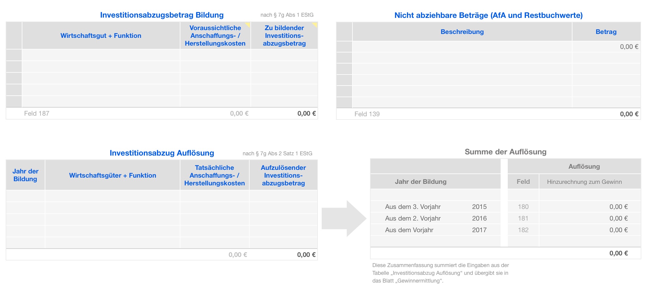 - Sonstiges: Gewinnzuschlag, Rücklagen, Beteiligungen, Teileinkünfte, Einlagen etc.