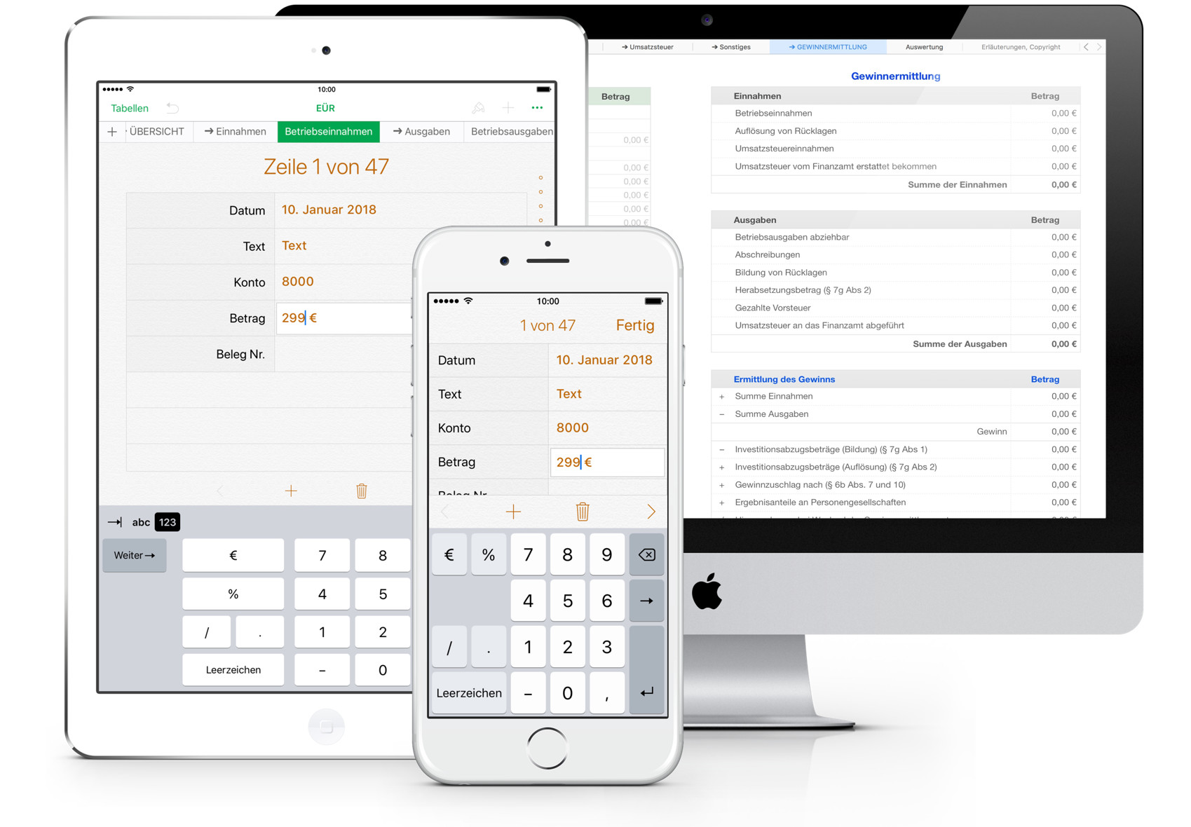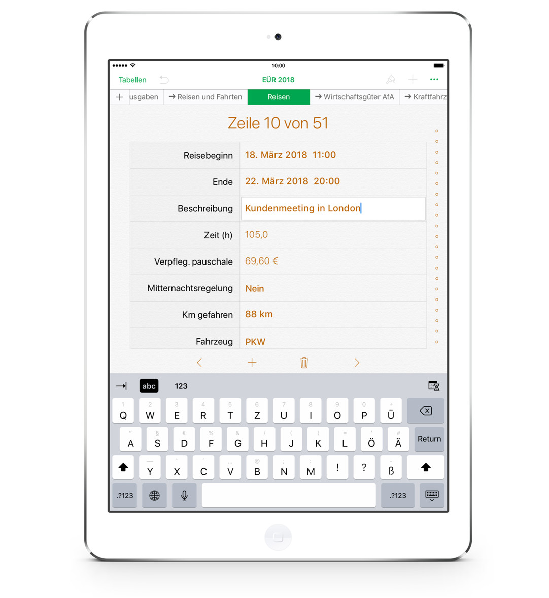 Beim Einsatz auf dem iPad und iPhone stehen zusätzliche Eingabeformulare für die Einnahmen, Ausgaben und Reisen zur Verfügung, wodurch die Eingabe erleichtert wird. Numbers auf dem iPhone oder iPad benötigt stets die aktuelle Version von iOS.