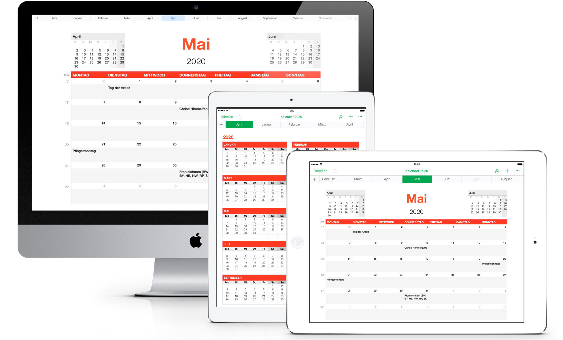 Der Kalender für 2020 eignet sich zum Ausdrucken und für den Bildschirm auf Mac und iPad. Jeder Monat ist auf seinem eigenen Blatt und ist mit Kalenderwochen versehen. Für jeden Tag gibt es Platz für Einträge.