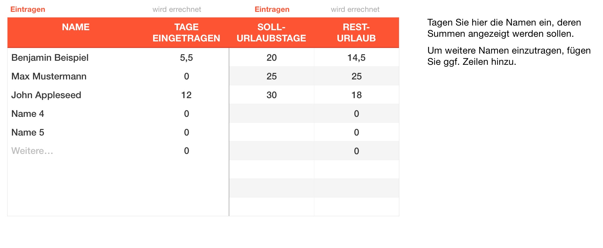 - Summe der Jahres-Urlaubstage übersichtlich dargestellt
