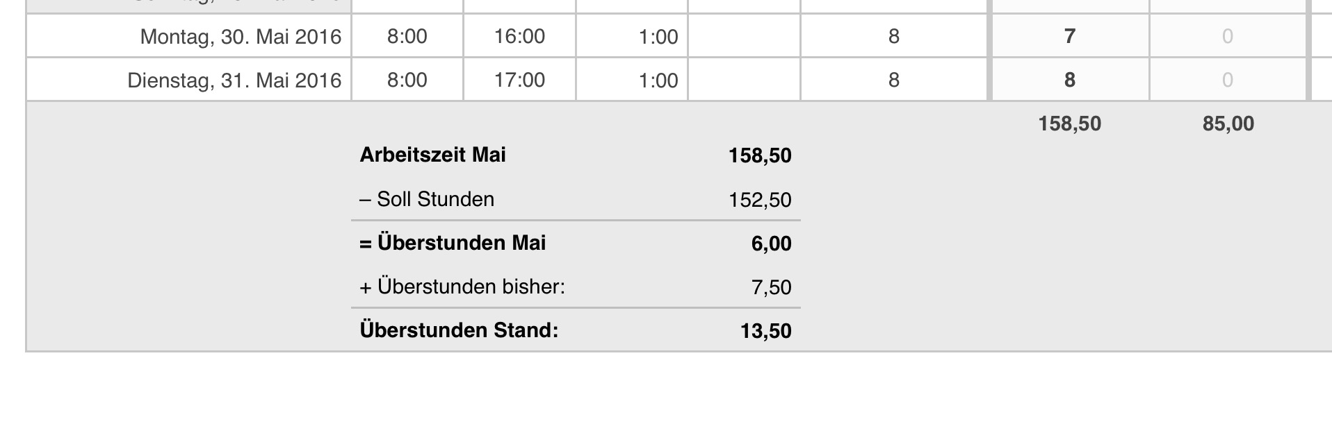 Um Überstunden abzubauen, vermerken Sie den Tag als Freizeitausgleichund tragen nur die Soll-Stunden ein.