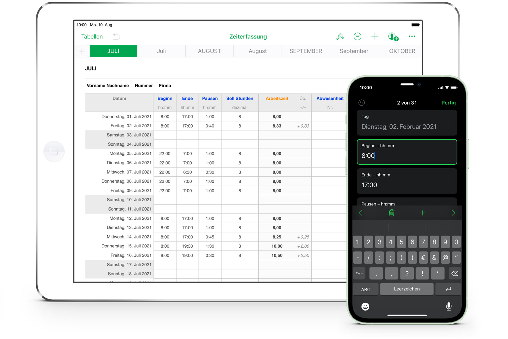 Auf dem iPad und iPhone können die Eingabeformulare zur einfacheren Bearbeitung genutzt werden. Mit iCloud oder iCloud Drive können Sie jederzeit zwischen iPad, iPhone und Mac wechseln.