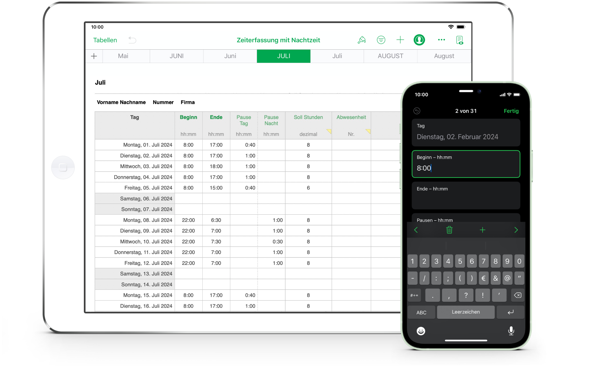 Auf dem iPad und iPhone können die Eingabeformulare zur einfacheren Bearbeitung genutzt werden. Mit iCloud oder iCloud Drive können Sie jederzeit zwischen iPad, iPhone und Mac wechseln.